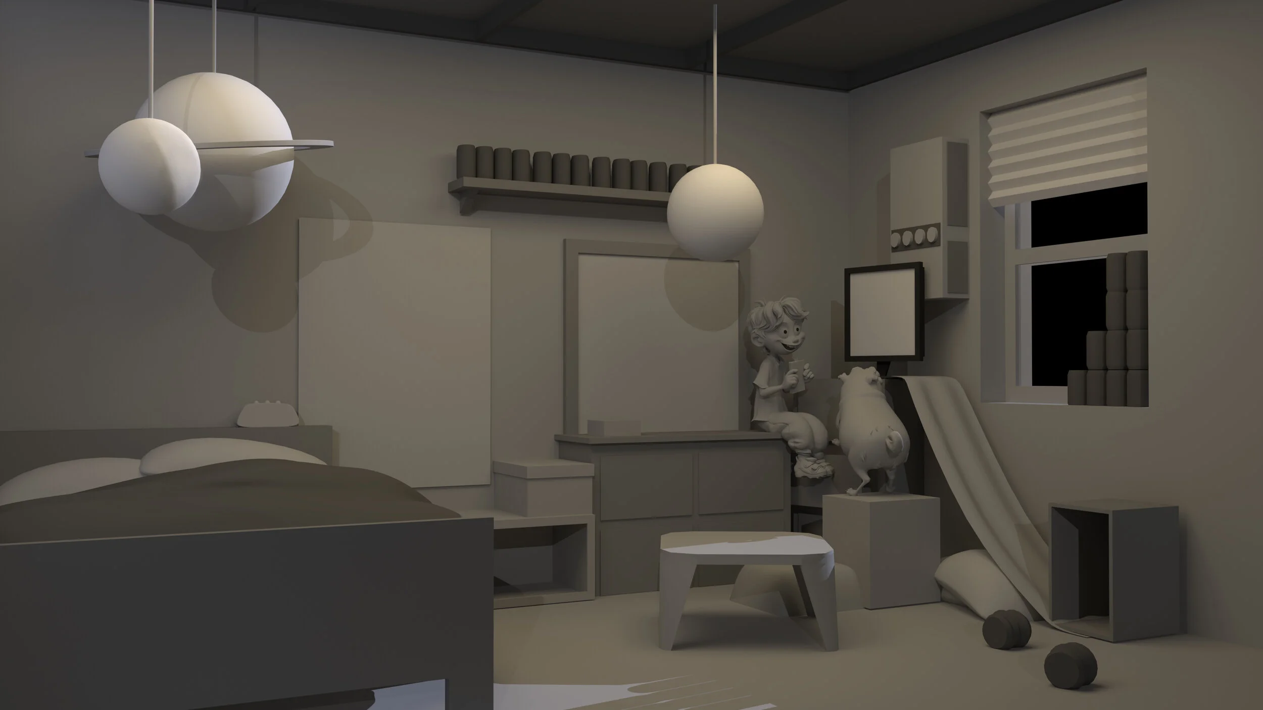 As a 3D Visual Development Artist for the film, I was responsible for 3D concept modeling environments and props, early look development, and camera scouting / previs.