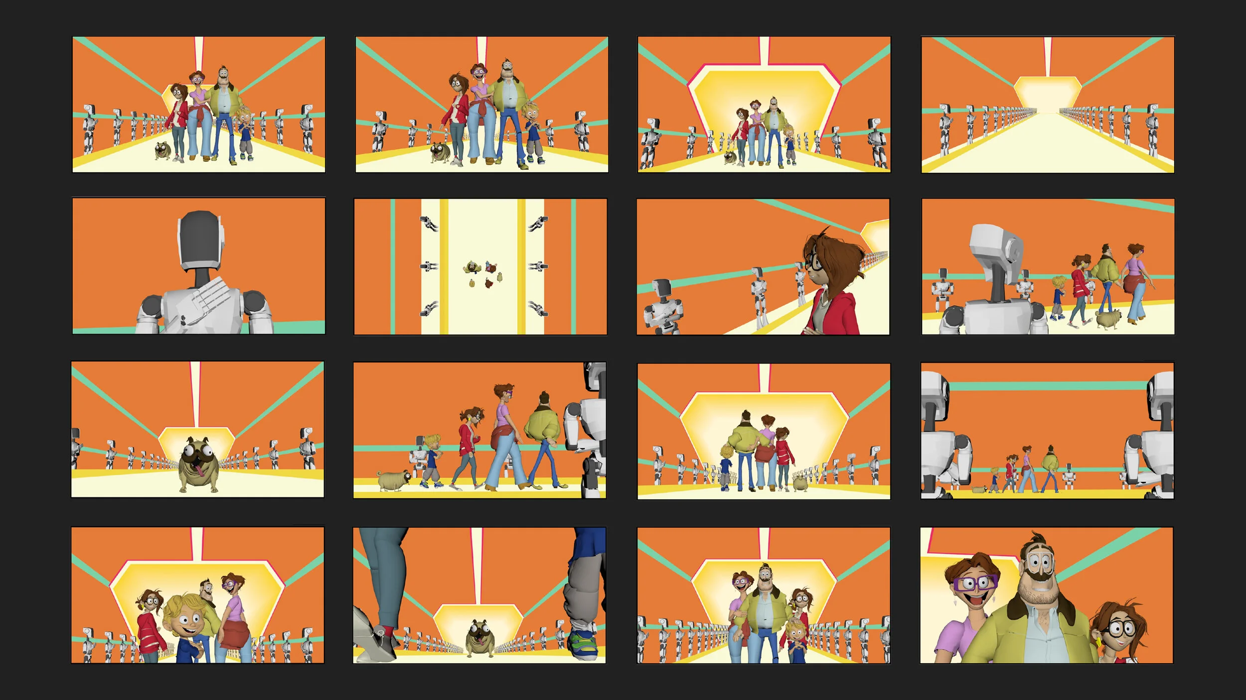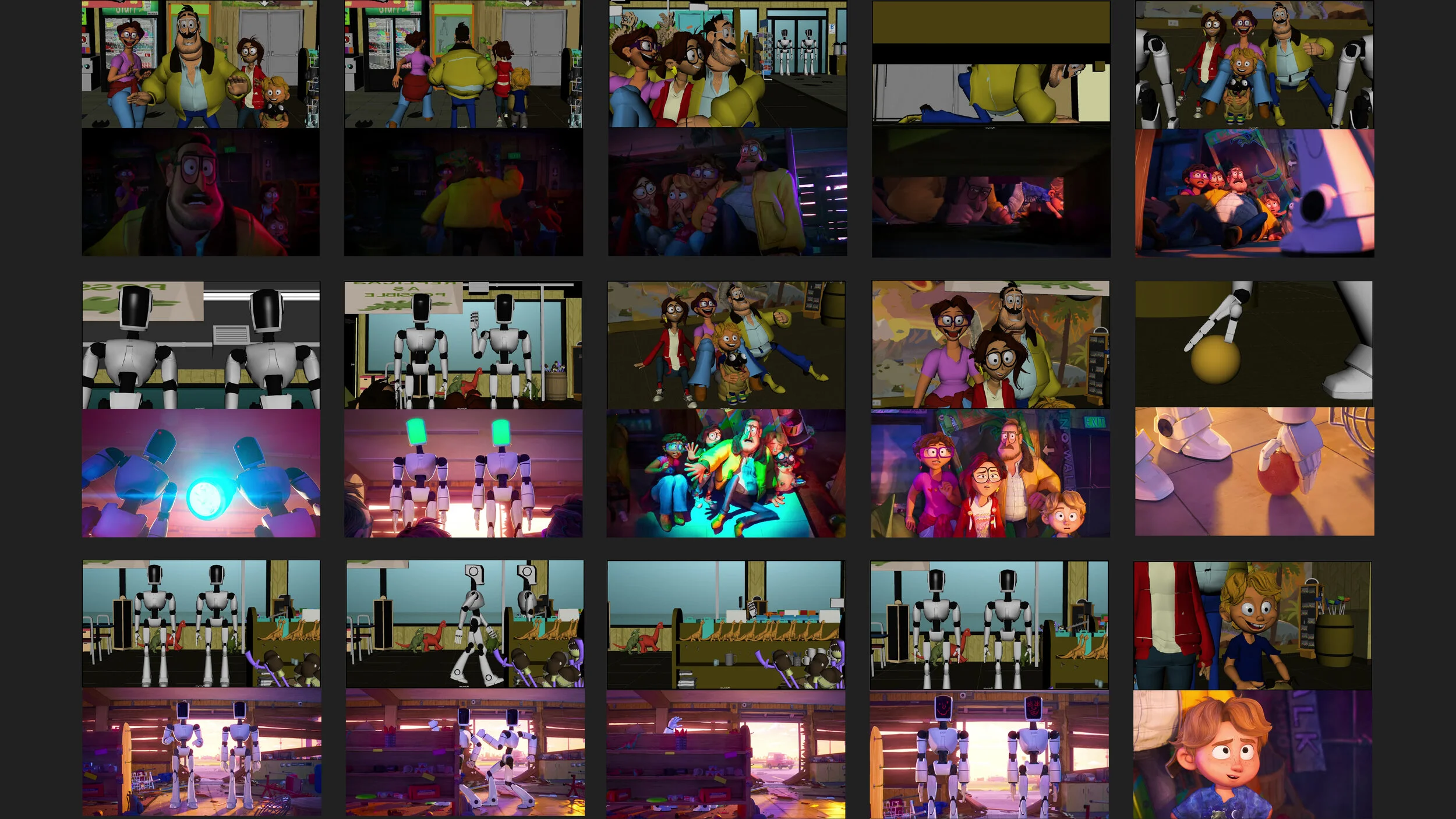 Dinostop model and Mitchell family character models created by the 3D Visdev and previs teams.